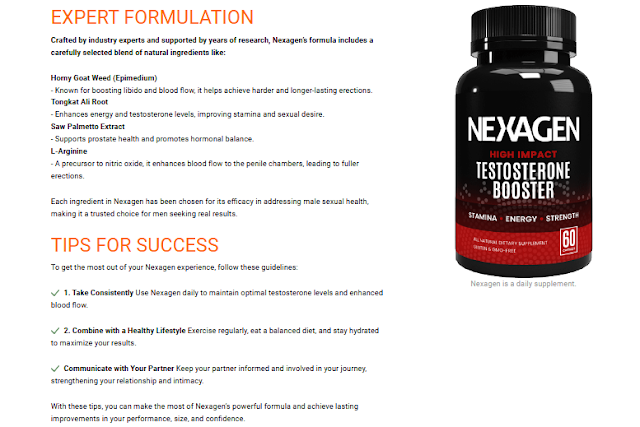 Nexagen er en opgradering af alle almindelige beskær, der absolut forventes til seksuel forbedring hos mænd tæt ved udførelse og forsikring. Det kompenserer for problemer, der er opnået af lav charme eller endda nedsat udholdenhed eller erektil brud gennem udvikling af lokale isolater, aminosyrer og centrale vitaminer. Disse søde sager forpligter sig til at hjælpe seksualdriften samt foreslå ægte kolossale ændringer i størrelse, stabilitet og generel glæde.